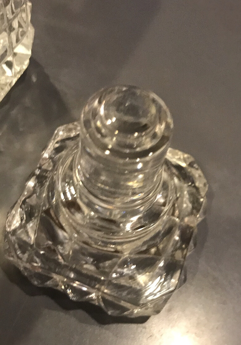 Very fancy beautiful decanter. Heavy cut glass & really lovely designed topper. Excellent condition. No chips cracks or anything. Will pad well to ship. Ships within 3 business days. Thank you for looking!