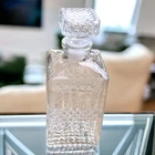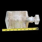 This vintage glass decanter with a square shape and diamond pattern is a perfect addition to any barware collection. It has a capacity of 1 qt and comes with a stopper. The decanter is made of glass and crystal materials and stands at a height of 8.5 inches. The mid-century modernist style and clear color make it a great piece for all occasions. It is an original item from the 1980s with an unknown country/region of manufacture. The decanter is hand wash only and weighs 4.5 lbs. It comes as a set of 2 glasses and is unmarked. Ideal for collectors and those who appreciate unique barware pieces.