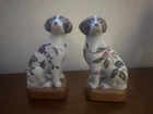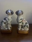 Vintage Staffordshire Style Dog Bookends, Figurine Set, Asian, Floral, ceramic