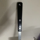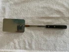 The Vintage Stainless Steel USA Spatula is a collectible kitchen tool perfect for flipping pancakes, burgers, and other dishes. Made in the USA, this spatula boasts a classic design and durable stainless steel construction. Its ergonomic handle provides a comfortable grip, making it a practical and stylish addition to any kitchen collection. Ideal for cooking enthusiasts or vintage collectors, this spatula combines functionality with a touch of nostalgia. The only markings that I see on this flipper are lettering near the handle and it says stainless steel USA and there are two little tiny stars. It looks like an ECKO turner, but I am not entirely sure. There are some surface scratches and signs of use but still has many years to go. The handle is some kind of very dark smooth plastic. Maybe Bakelite . It is well made. Please see all photos.