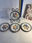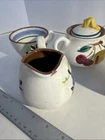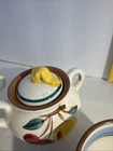 Vintage Stangl Pottery Set Of 20 Plus 2 Books. Flemington New Jersey. 4- 10" Dinner plates 4- 8" Salad plates, One has a blemish 4- 6" Bread plates, one has a small chip in top outer edge. 2- 5 1/4 " soup bowls- small chips on top edge on both. 3- tea cups 1- Creamer with a large chip in spout. 1- Sugar bowl, paint worn on inside of one handle. 1- Tea Pot , one chip on inside of lid. 2 Books The Collectors Handbook of Stangl Pottery by Norma Rehl. Copyright date 1979 second printing 1982. I acquired this beautiful set from an estate sale. It has been in storage and I have never used these pieces. Stangl Pottery by Harvey Duke . Copyright date 1993 Great illustration in both. Only allowed 24 photos, so I can send more direct photos upon request before purchase.
