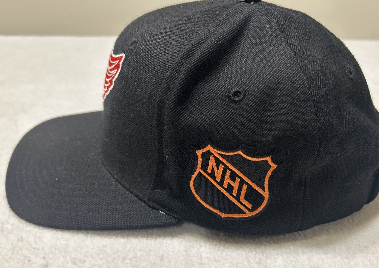 Gender:Unisex AdultColor:BlackOfficially Licensed:YesSize:One SizeSport:HockeyCountry of Origin:South KoreaLeague:National Hockey League (NHL)Team:Detroit Red WingsBrand:StarterProduct:Cap, Hat