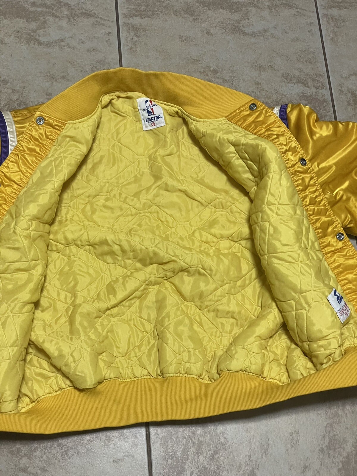 HomeVintage Starter Los Angeles Lakers Satin Bomber Jacket Yellow Size XL