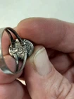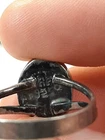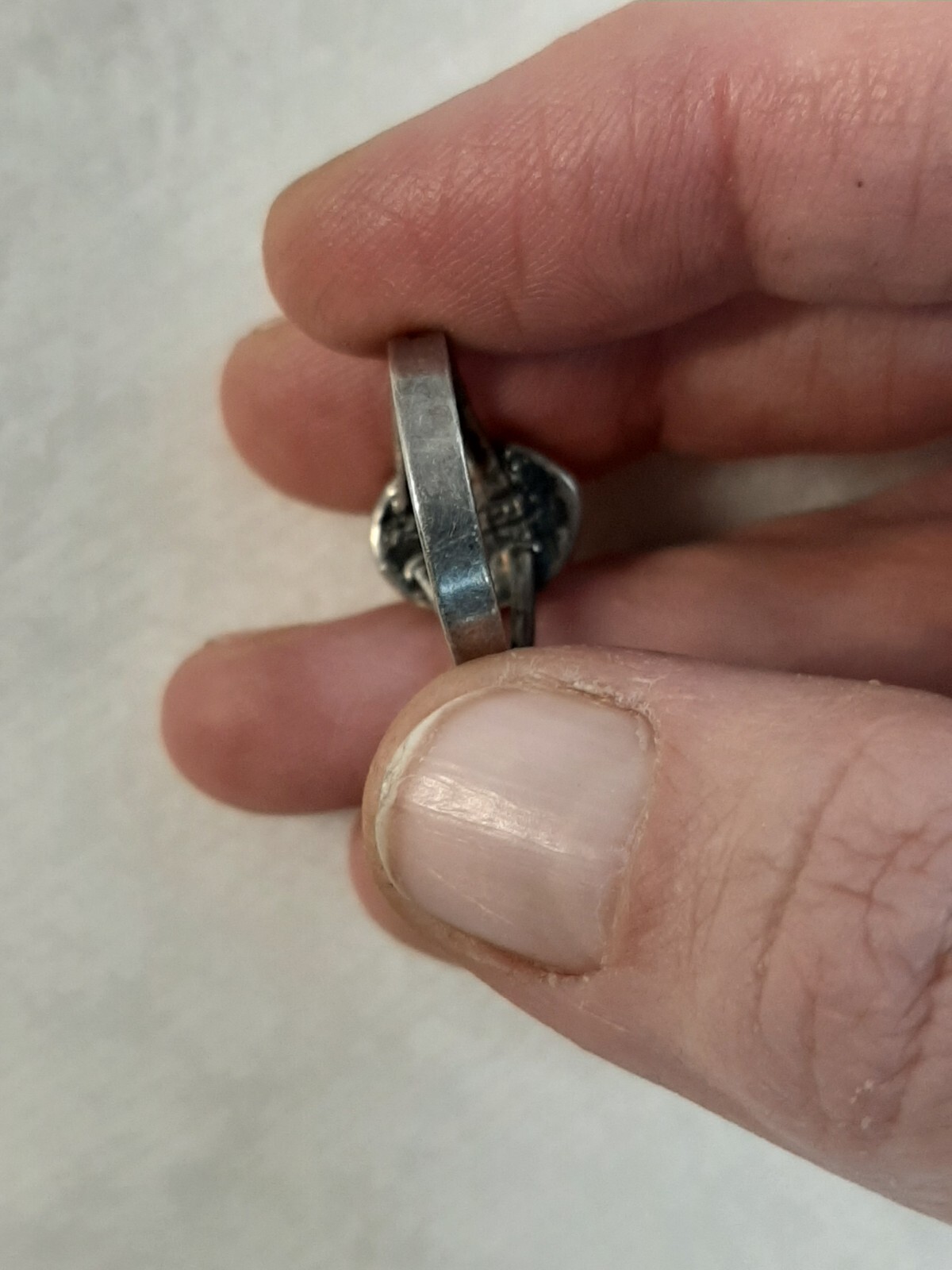 This stunning vintage ring features a gorgeous inlaid abalone shell set in solid 925 sterling silver. The unique iridescent colors of the shell catch the light beautifully, giving it a one-of-a-kind charm. Though pre-owned with minor wear, it has a lovely vintage character. The craftsmanship is excellent, and the signed RF mark adds to its authenticity. Perfect for adding boho elegance to any outfit! A little cleaning will make it shine even brighter.