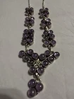 This Vintage Sterling Silver Amethyst Bezel Cabuchon Bib Necklace features a unique Y-drop pendant design with 43 amethyst stones in a bezel setting. The necklace is 18 inches long and has a hook closure, making it perfect for various occasions like engagements, anniversaries, birthdays, and Mother's Day. Handmade with natural amethyst stones, this necklace exudes beauty and artistry, adding a touch of vintage elegance to any outfit. Made of 925 sterling silver, this original piece is a stunning addition to any jewelry collection.