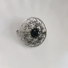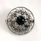 Vintage Sterling Silver Black Onyx Cabochon Center Grannie Victorian Brooch