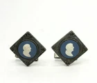 Welcome to Wowsilver. We have been selling fine jewelry on ebay under the seller name ADINA since 1998. Over the years we have earned over 18000 feedback score with 100% positive rating. We are proud to offer our exclusive, desirable and (sometimes) rare inventory of silver coins and various silver items under Wowsilver. Bid with confidence knowing that you are dealing with a reputable seller and we offer a 30 day unconditional return policy. Feel free to check our items under wowsilver and ADINA as they are updated daily with new items. Vintage Sterling Silver Blue & White Resin Cameo Cufflinks 925 Measurements: 29.5 x 29mm Cameo Diameter: 15mm Hallmarks: Sterling Weight: 20.4 grams All Metal, Diamonds, and or Gemstones Have Been Professionally Tested and are Guaranteed as Advertised Dear Valued Customers We appreciate your positive feedback! If, for any reason you are not 100% completely satisfied with your purchase, please contact us before leaving feedback. We will do everything within our power to make your wowsilver experience a positive one. Thank you 7444