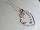 Unlock your style potential with this charming double heart diamond sterling silver pendant necklace. Measures approx. 18" long. Heart is approx.1.20" with the attached bail x .75" Weight 3.2 grams Marked 925 for sterling silver is marked on both pieces. The pendant is also marked SAI - necklace is marked Italy 925