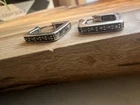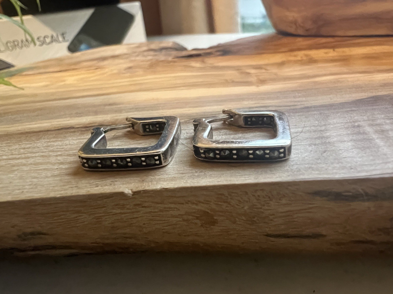 These vintage Sterling Silver square hoop earrings featuring faceted marcasite stones are a stunning addition to any jewelry collection. The natural marcasite stones add a touch of elegance to the silver hoops, making them perfect for a birthday or special occasion. Signed as 925 sterling and stamped with either Thai or Italy (we just can’t make it out) with a vintage charm, these earrings are sure to become a timeless piece in any woman's jewelry collection. These earrings have Marcasite on the inside also which is pretty cool. There is one stone missing.