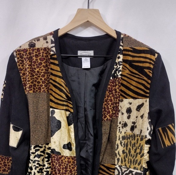 Features Multicolor Animal print Patchwork Open front Lined Boho Retro 90s Y2K Vintage Great Pre-Loved Condition SIZE M Measurements Pit to Pit: 20.5" Length: 21" Waist: Rise: Inseam: Length: Please check to be sure of fit Smoke Free Pets Free Please feel free to contact me for any questions or offer Bundle Discounts Offered Fast Shipping 51006-4860