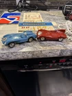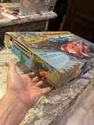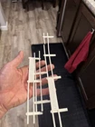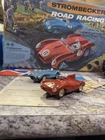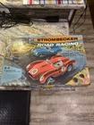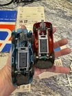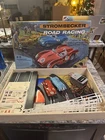 A lucky kid named Larry got this on his birthday all those years ago. The box is in good condition, but the corners have been taped and of course with age there is some damage there’s only nine pieces of track, which I’m sure is missing a few. the metal strip is coming up on 2 pieces but looked like it’s easy to reattach. There is also an extra metal strip .. there are 20 plastic guard rails one is completely broken in half And another has a broken piece. Both cars are here with the drivers head. The extra stickers I don’t believe his original to this, but I will. I will leave them in there. The power box was plugged up and I felt it working, but everything else is untested, but it does have power. I have it listed as FedEx shipping, but at the time I purchase, I will figure out the cheapest way Please see all the pictures and thanks for the interest.
