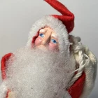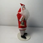 Vintage style Santa figure on cardboard base. Santa measures 5-1/2" tall and has a bell and sack. His clothes are felt with white pipe cleaner trim. If you have any questions, please email me before purchasing.