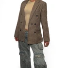 Channel the ultimate Y2K grunge vibe with this vintage plaid double-breasted blazer. Featuring a neutral brown and black houndstooth pattern, structured shoulders, and an oversized fit, this blazer is the perfect layering piece for both casual and edgy streetwear looks. Pair it with ripped jeans, mini skirts, or cargos for that effortless 90s-early 2000s model-off-duty aesthetic. Lightweight but structured, this jacket works for all seasons. Style: Grunge, Y 2K, Indie Sleaze, Academia, Streetwear