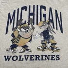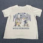 Get ready to show off your love for the Michigan Wolverines with this vintage style Y2K T-shirt! Featuring Looney Tunes characters Bugs Bunny and Tazmanian Devil, this beige shirt is perfect for any college fan. The short sleeve design and regular size make it a great choice for any season, whether it's winter, summer, fall, or spring. This T-shirt is made by The Girl Studio and comes in a size L. It's a must-have for any women's clothing collection. Don't miss out on this unique piece that combines your love for sports and cartoons!