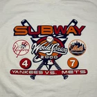 Show off your love for the New York Yankees and Mets with this vintage Subway World Series T-shirt. The XL size ensures a comfortable fit for any fan, while the classic design is perfect for baseball season. Whether you're at the game or watching from home, this shirt is a must-have for any fan of Major League Baseball. Featuring the iconic logos of both teams and commemorating their World Series match-up, this shirt is a great addition to any fan's collection. Made from high-quality materials, it's the perfect way to show your support without mentioning the condition of the item. Don't miss out on this classic piece of MLB fan apparel.