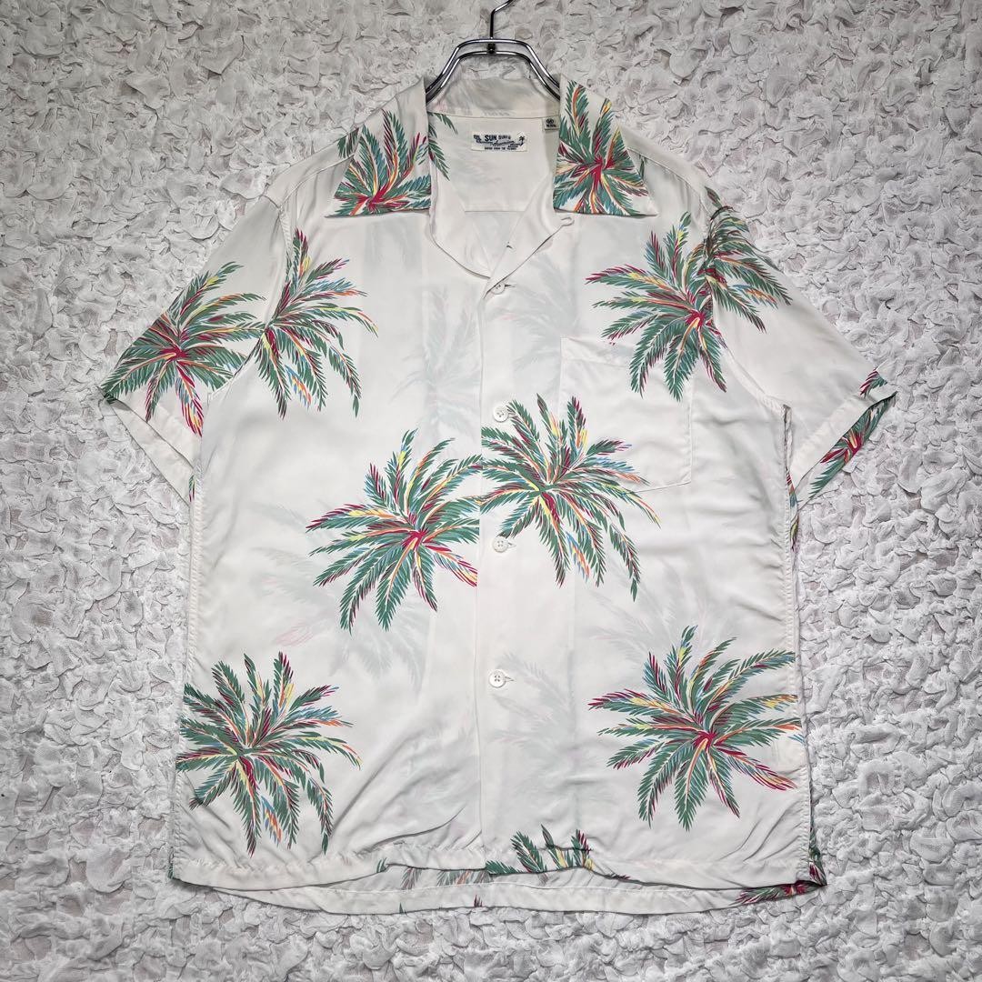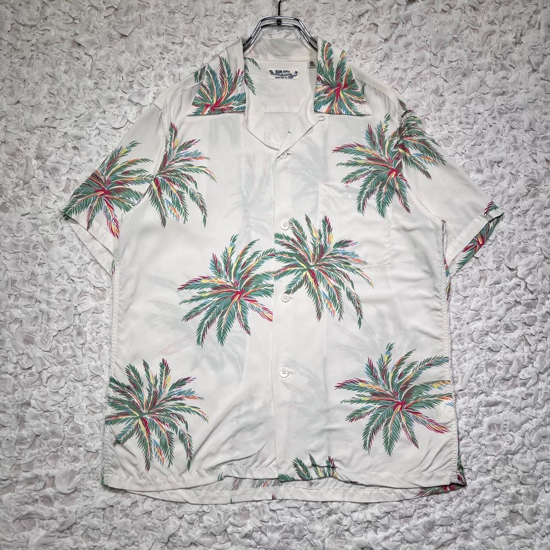 Sun Surf Hawaiian Shirt Palm Tree Pattern Yellow Rayon S Japan Made