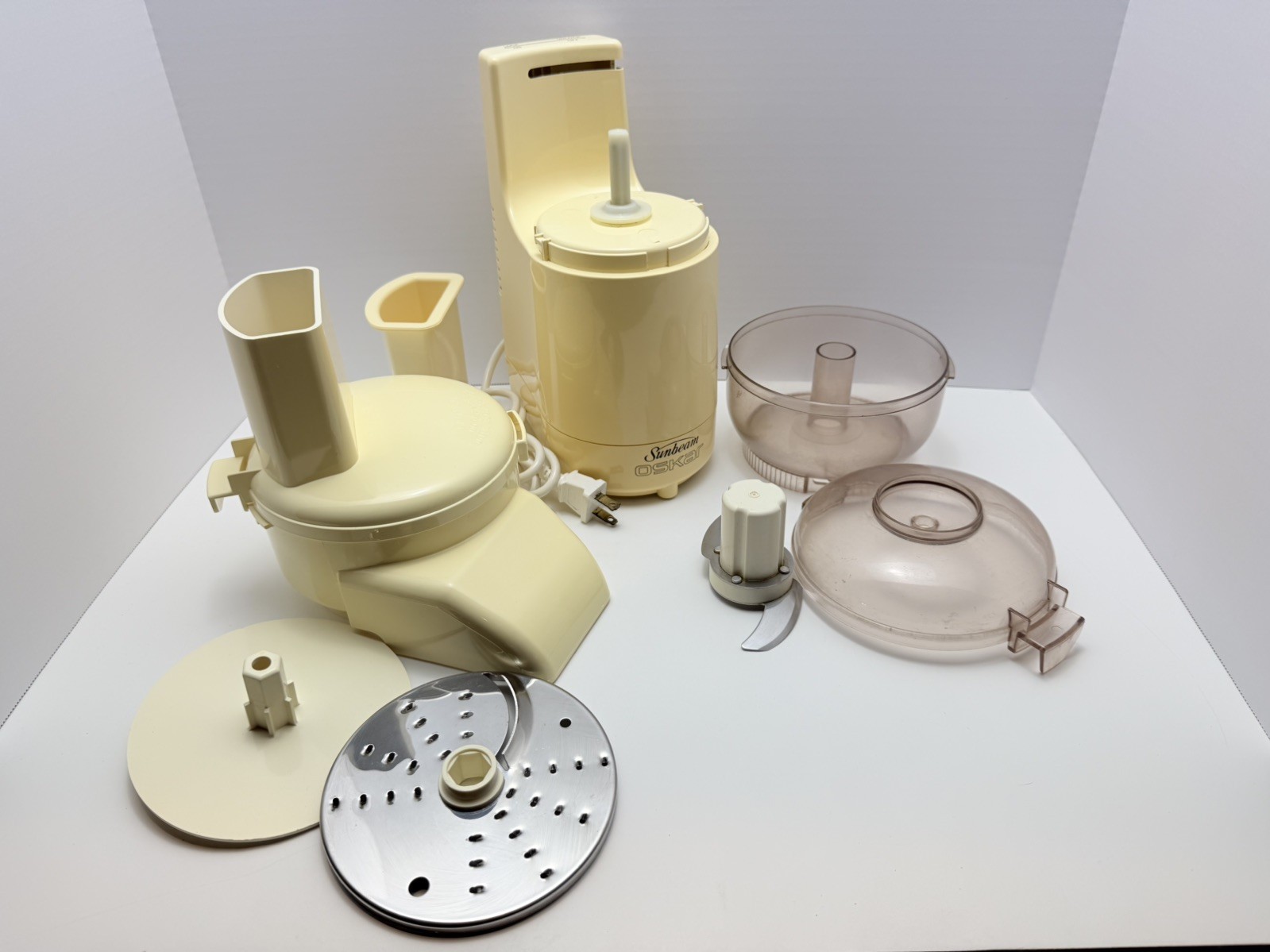 The Sunbeam Oskar Food Processor 14081 is a versatile kitchen appliance made in France. With its electric power source and 500W power, this full-size food processor is designed to blend, chop, and process various foods such as fruits, vegetables, and meats. It features a 2 cup capacity, non-slip feet, a safety lock, and dishwasher-safe parts for easy cleaning. The beige color and glossy finish add a touch of elegance to the kitchen. This multipurpose food processor also includes accessories like blades, a shredder, a bowl, a chopper, and a base, making it a valuable addition to any home kitchen.