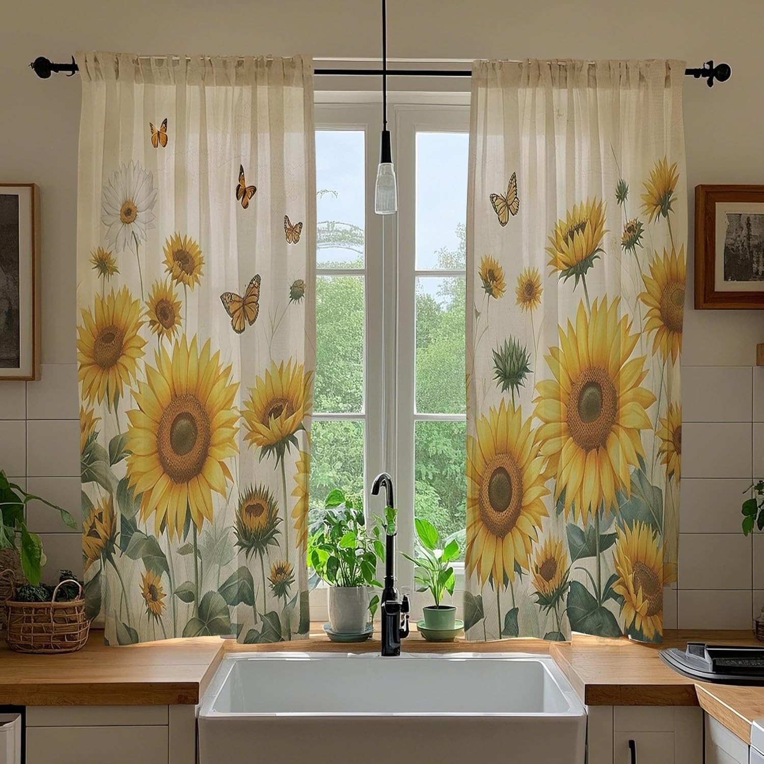 ��What��s Included��Each package includes 2 panels modern farmhouse vintage yellow sunflower butterfly kitchen curtains 36 inch length, each panel measuring 26"W x 36"L, Set measures: 52"W x 36"L. Easy to install and slide. Rod pocket construct fits most rods in the market. ��Modern Vintage Yellow Sunflower Design��Modern farmhouse vintage yellow sunflower butterfly kitchen curtains,bathroom window curtain panels design not only can be your wonderful home decor for living room, bedroom, children''s room, or any place you want to decorate, but it can be perfect gift for festive and birthday of your kids and friends,neighbors. ��Function��Soft polyester fabric and light filtering modern farmhouse vintage yellow sunflower butterfly kitchen curtains over sink which will decorate your kitchen and also provide privacy. Not only are these floral kitchen curtains suitable for the kitchen area, but also a perfect addition to your living room, dining room, bedroom, bathroom and basement window. They are suitable for rustic, vintage and farmhouse styles. ��Easy Care��The small short kitchen window curtains can be machine washable in cold water, gentle cycle;but hand wash more recommended, do not bleach, hang to dry. You can iron at low temperature if needed. ��Nice Service��Decorate your home, good quality. We will try our best to improve our service and product quality. Just feel free to contact us if you have any questions.