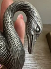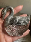 This vintage Swan silver and glass salt and pepper shaker set is a rare find for collectors. The elegant design featuring a swan brand adds a touch of sophistication to any kitchen or dining table. Made of silver with glass accents, this set includes a salt and pepper shaker making it a unique and functional addition to your collection. Ideal for adding a touch of nostalgia and charm to your culinary space.