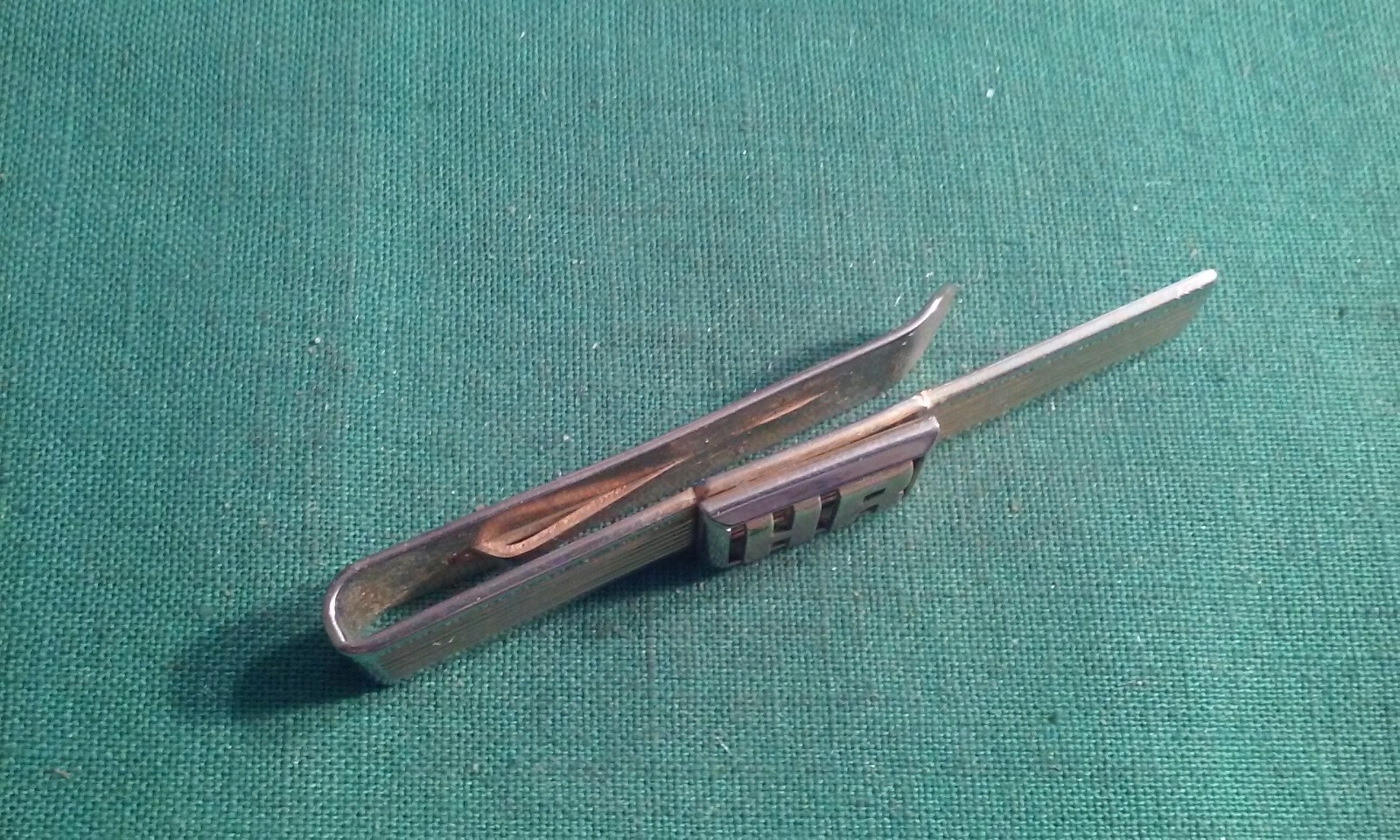 Vintage Classic Swank Gold-Tone Tie Clip Bar w/ Initials HR 3" Inches Long.