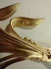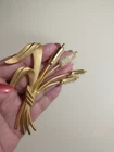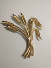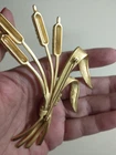 Please see images for size and condition description. Beautiful Swarovski brushed gold-plated matte cattail brooch w sparkling clear crystals. No loose or missing stones. No verdigris. Pin clasp is in good working order. Swan logo present. Definitely a statement piece that is 4 inches long. As is. Thanks! FREE SHIPPING!