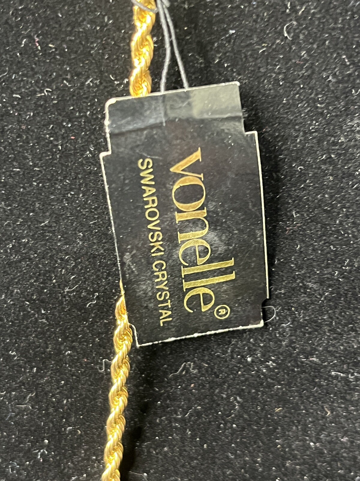 This stunning Swarovski necklace features a shimmering crystal round pill box/locket in a pavé setting, perched atop a 32" gold tone chain. The round pendant is a gorgeous addition to any jewelry collection, and the chain is long enough to wear as a standalone piece or to pair with other accessories. The necklace is perfect for any occasion and would make a fantastic gift for a loved one. The brand is well-known for its high-quality crystal jewelry, and this piece is no exception. The gold tone chain adds a touch of elegance to the overall design, while the crystal swan is a unique and eye-catching element. The necklace is sure to be a favorite among necklace enthusiasts. MM