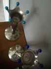 Vintage Swedish Chrome Plated Jester Crown Candlestick Holders Set of 2. Chrome plated. Felt bottoms and colored glass balls. ☁️Cloud 9☁️ - 8 1/4" tall - 3 1/2" base - 1.03 lbs combined weight 🌎 Location: Guntersville, AL Shipping and Local Meetup available!