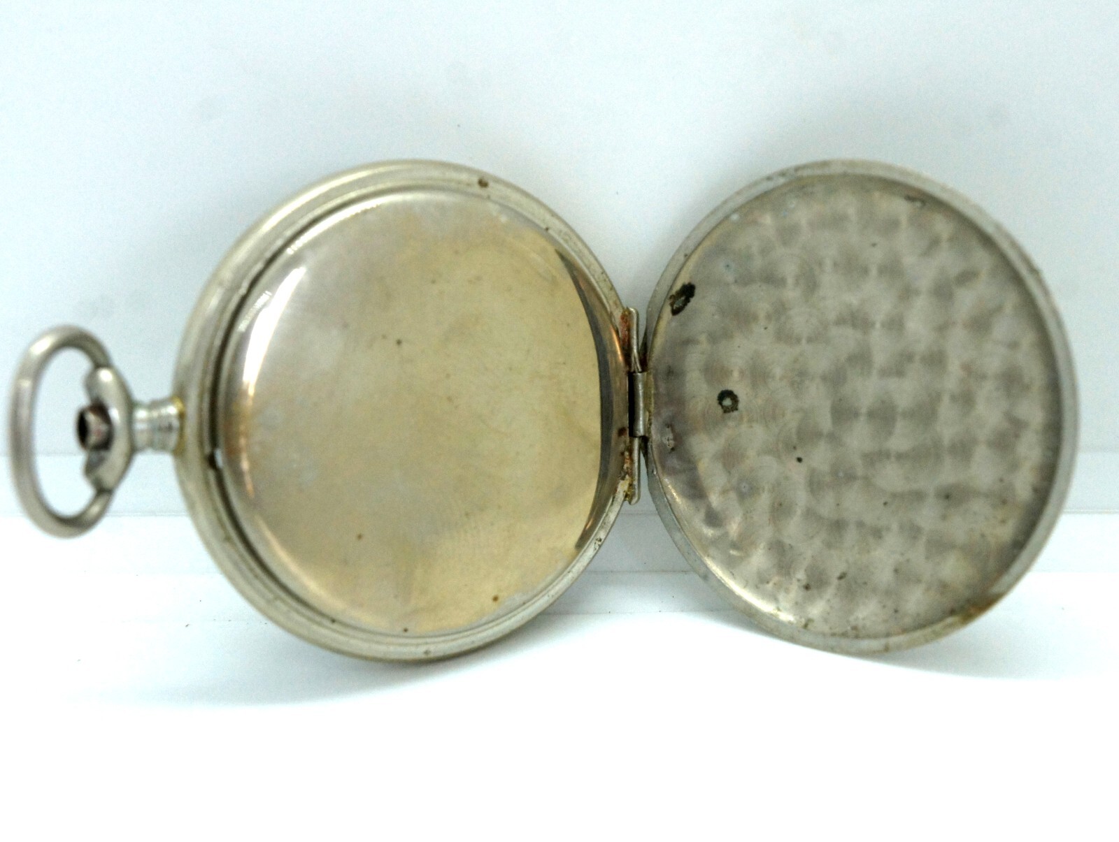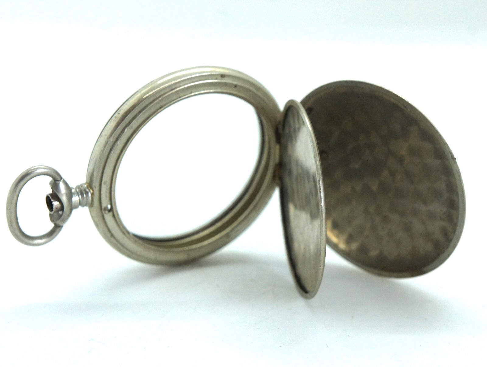 NICE VINTAGE SWISS OPEN FACE POCKET WATCH CASE 48.5 mm WITH NEW CRYSTAL EXCELLENT CONDITION There is a SWISS graving on inner cover. Silver colored case metal looks nice without damages or abrasion. Original from vintage swiss pocket watch. Crystal diameter = 39 mm Case diameter = 48.5 mm See pictures! Do not miss! Payment within 3 days after auction ends. International Shipping with a tracking number! Buyers with a feedback of less than 10 points should contact me first! ITEM # 05553