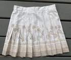 This is a listing for a pre-owned vintage Tail tennis skirt in a size 8 (modern small). It is made in the USA and has an adorable palm tree tennis racquet & ball graphic print and elastic side panels at waist. It has a back zipper closure. Please ask all questions prior to auction end for all sales are final. Thank you & good luck! BRAND: TAIL SIZE: Vintage US size 8. 14" across waist lying flat, 15.5" in length Fabric: 100% polyester Unlined Made in USA