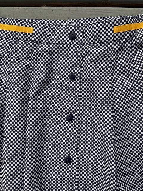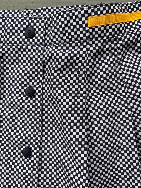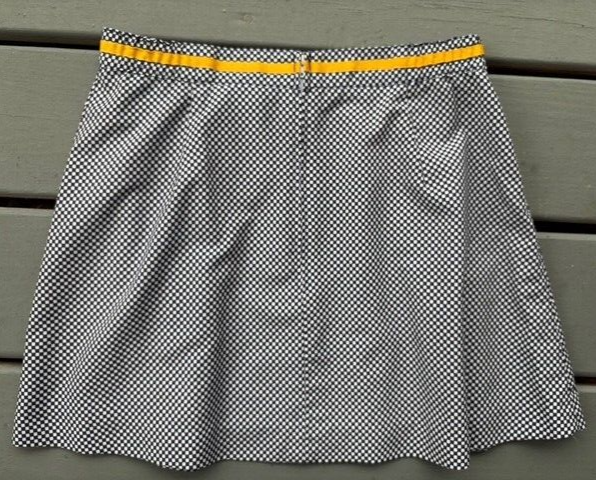 This is a listing for a pre-owned vintage Tail tennis skirt in a size 8 (modern small). It is made in the USA and has a yellow grosgrain ribbon trim and elastic side panels at waist. It has a back zipper closure. Please ask all questions prior to auction end for all sales are final. Thank you & good luck! BRAND: TAIL SIZE: Vintage US size 8. 14" across waist lying flat, 15" in length Fabric: 100% polyester Unlined Made in USA