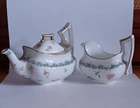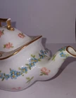 This vintage tea set from Limoges, it consists of a teapot and creamer, both beautifully hand painted with a delicate floral pattern. The pieces are made of high-quality porcelain and have a glossy finish. The set is an original production from the T&V product line. The Teapot stands at 4.25" & The Creamer stands at 3.75". They are in good vintage condition, Just as you can see in the photos, the gold paint is fading away and is falling off in some places. I will pack it with care and will include tracking. Thx for looking. If you have any questions, please feel free to notify me :)