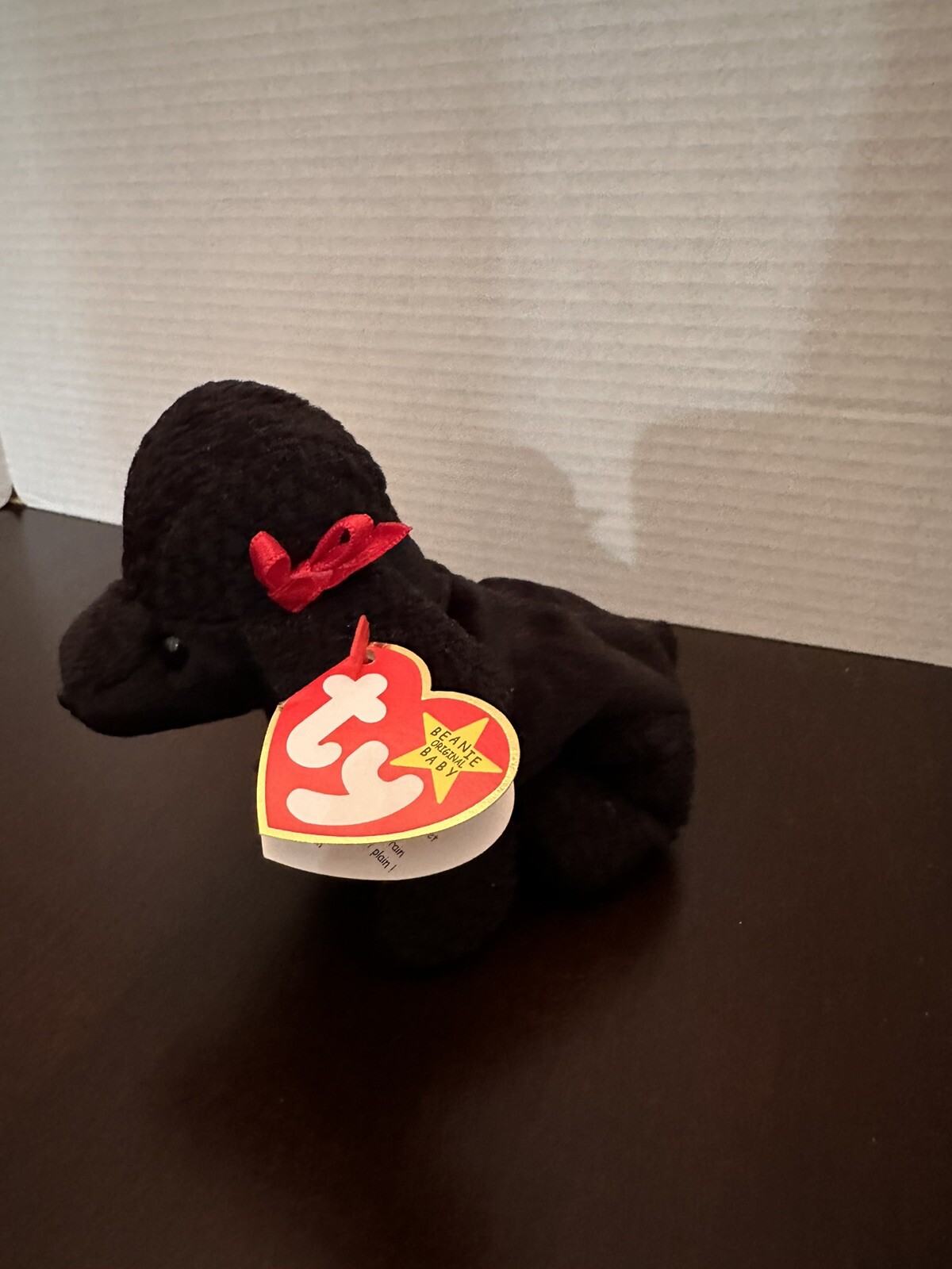 This vintage TY Beanie Babies GiGi Poodle plush toy animal is a must-have for any collector or fan of the iconic brand. With its adorable design and high-quality materials, it is sure to bring joy to anyone who receives it. The plush toy is made by Ty, a trusted and well-known brand in the world of toys and hobbies. The GiGi Poodle is part of the original Beanie Babies collection and has been retired, making it a rare and valuable find. It features a cute and cuddly design that is perfect for children and adults alike. Whether you are looking to add to your own collection or give it as a gift, this TY Beanie Baby is sure to please.