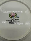 This vintage chop plate from Tabletops Unlimited features a beautiful ivory color with pink roses, making it an eclectic addition to any dinnerware collection. The round shape and scalloped edges add a touch of elegance, while the stoneware material ensures durability for everyday use. The plate set is a contemporary original production style of art pottery, with a printed backstamp and no handmade details. It is perfect for all occasions and is a great addition to any table setting. This product line is called Victoria, and it was manufactured in China during the 1990s. The set includes chop plates, and it is a great addition to any collection of decorative cookware, dinnerware, and serveware.