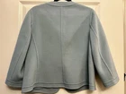Add a touch of feminine sophistication to your wardrobe with this Talbots 90% Wool Ruffle Front Jacket, designed in a soft powder-blue and finished with chic crop sleeves for a modern, tailored silhouette. The cascading ruffle detail gives it that refined quiet luxury feel — polished, elegant, and effortlessly elevated. Crafted from a warm wool blend, this jacket is perfect for layering over blouses or lightweight knits without feeling bulky. The cropped sleeves give just the right amount of structure while keeping it versatile for both professional and casual outfits. Details • Women’s size 10 • 90% Wool / 10% Nylon • Powder blue • Ruffle-front closure snap buttons pockets • Crop sleeves (¾ length) • Tailored fit, fully lined • Dry clean