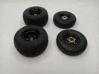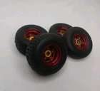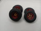 Really nice set of offset 2 piece racing wheels for Tamiya 1/10 scale Brat, Bug Or Buggy. Proline waffle tires on the back and sand unlimited the smoother tires on the front. See pictures for details.