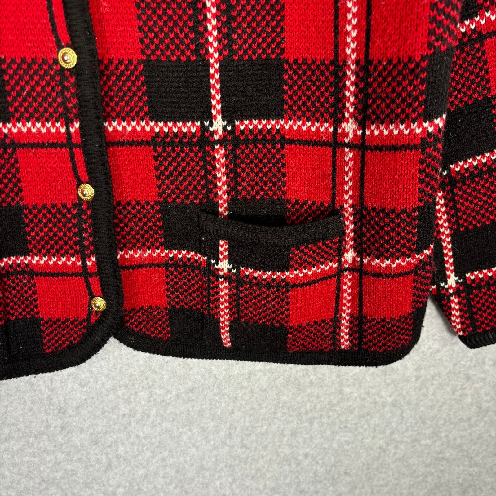 Vintage Crystal Kobe Cardigan Sweater Womens Small Red Black Plaid Gold Buttons Retro Glam Royal Twee Corp Career Work Office Business Church Knit Pockets Preppy Classic Pockets Classic Preppy Holiday Christmas Ugly 80s Good Vintage condition: Please review all photos for condition. No visible stains or marks. SKU 5595 **Please see all pictures for full item condition and details** - Ships Same/Next Day, Professional Seller, Offers Welcome, Like or watch for price drops - Item in photos is exact item you will receive - I list new items daily, be sure to browse my store/closet for more items - Bundle pricing and combined shipping available for additional savings - Feel free to send a message