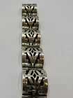 The Vintage Mexico Sterling Silver Shadow Box Bracelet is a unique piece of fine jewelry, featuring a round shape and a box closure. Signed by the maker and made of 925 sterling silver, this handmade bracelet is of original vintage manufacture in Mexico. It is a stylish tennis style bracelet perfect for special occasions like anniversaries and birthdays, and despite being vintage, it does not feature any main stone, making it a versatile and elegant accessory for any jewelry lover.