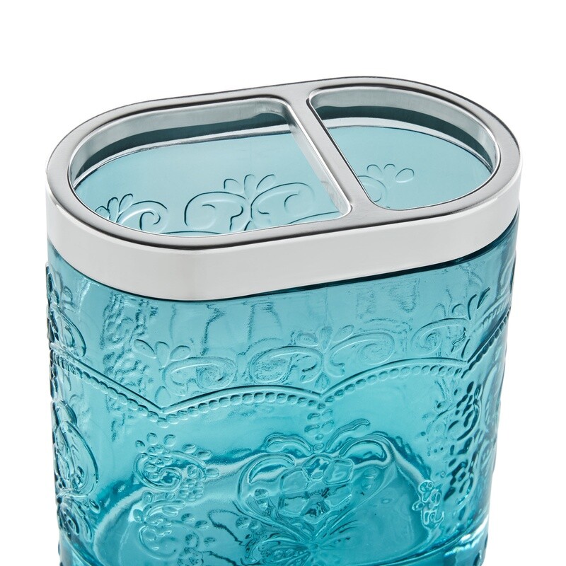 You may also like 5-Piece Wall Mounted Bathroom Hardware Set Stainless Steel Towel Holder Hooks US 44.31 USD 46.64 USD Free shipping 5% off Amelia 2-Piece Teal Bath Accessories Set, which includes a soap dispenser and a toothbrush holder, is a great way to add a touch of casual charm to your bathroom décor. The soap dispenser in this set features teal glass with a vintage-inspired embossed design and can hold up to 12 ounces of your favorite liquid soap, hand sanitizer, or lotion. The matching metal-capped toothbrush holder has two compartments that are thoughtfully proportioned to store toothbrushes and toothpaste. Meet Ree: Ree Drummond is a NY Times Best Selling Author, TV personality, social media phenom, and the woman behind the popular Pioneer Woman lifestyle blog that started it all. She's also a lover of butter, basset hounds, Ethel Merman, her hunky, cowboy husband Ladd, and their four kids. Her casual country style and delicious recipes have made her a go-to for all things cooking and entertaining. 2-piece teal-colored glass bath accessories set includes a soap dispenser and toothbrush holder Made of heavy-duty glass with an embossed design Vintage-style pump-head The refillable dispenser has a wide opening for easy refills Hand wash only Ideal for bathrooms or kitchens Soap dispenser measures 3. 1" Dia x 8. 2" H, holds 15 oz Toothbrush holder measures 4. 1" W x 3. 1" D x 4. 5"