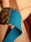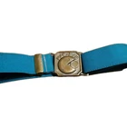 This vintage brass belt buckle from the 1980s features a teal flexible elastic waist design and brass buckle of the popular video game character Pac-Man. An original made by Lee in 1982. The wait band seriously can fit a waist size from a toddler size to an adult measuring 16" smallest- up to 36" stretched reasonably. Has easy secure adjustments. See all pics for details. Has been kept in storage for many years and due to the vintage nature will come as is. Any cleaning will be left to the the new owner and their best discretion. With that being said, my best professional opinion is this item can be cleaned and potentially could look good as new. Seems very durable with a lot of life. Well made. A very cool throw back of accessories and staple of the 80's.