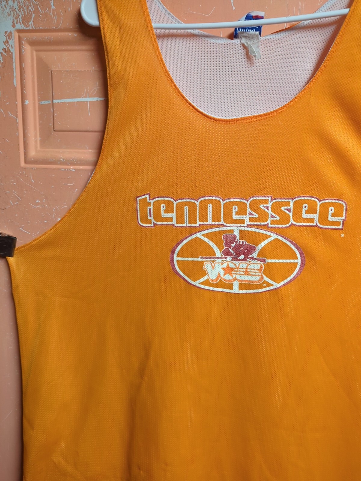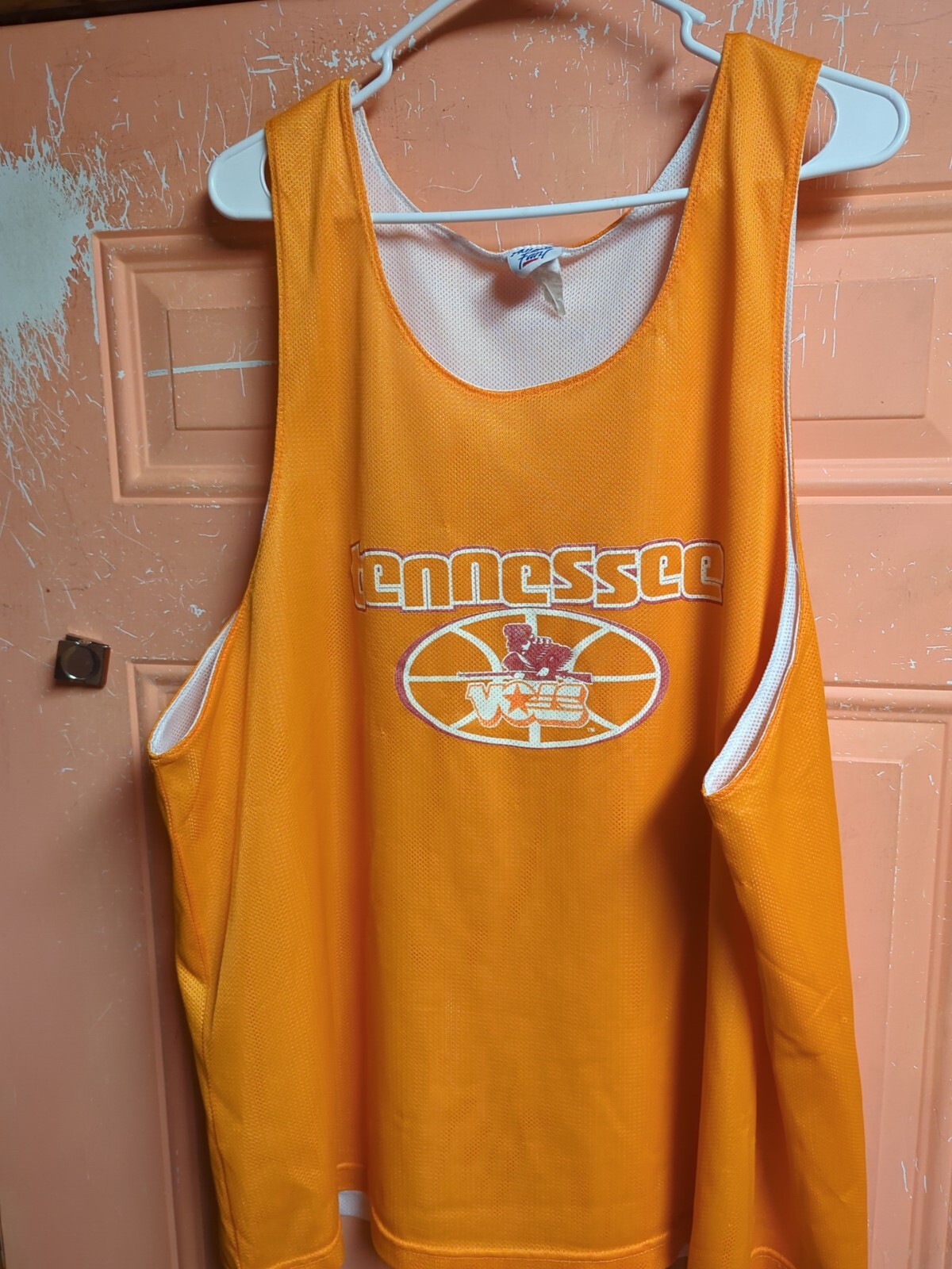Pit to pit 26 Length 31 The product is a vintage Tennessee Volunteers Vols basketball jersey in orange, available in either size XL. It features a design inspired by the Rifleman and is suitable for fans of the Tennessee Volunteers basketball team.