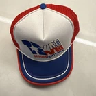 Celebrate Texas history with this vintage 1986 Sesquicentennial commemorative trucker hat. This officially licensed snapback features bold red, white, and blue colors with a foam front, mesh back, rope detail across the brim, and a raised “TEXAS Sesquicentennial 1836–1986” graphic. A true piece of Lone Star memorabilia! • Vintage 1986 Texas Sesquicentennial hat • Official commemorative release • Red mesh back with white foam front • Blue brim with red and white piping + rope detail • Snapback closure – adjustable • Made in USA (per style of tag and era) • Pre-owned with light staining on front panel and underside of brim (see photos) A collectible hat for fans of Texas history, vintage Americana, or retro trucker caps. Condition: Good vintage condition. Small stain on top front panel and discoloration on inner sweatband. No holes. Vintage: Yes – official 1986 release