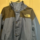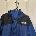 This Vintage The North Face 90s Mountain Jacket is a mid-length Gore-Tex blue and black jacket in size M. It features a full zip closure, embroidered logo accents, and is designed for casual occasions. The jacket is water-resistant, hooded, and made with a polyester lining, making it a durable and stylish option for winter and fall seasons. With its retro design and unique features like zipped pockets and an elastic waist, this North Face jacket is a perfect choice for the collection of any outdoor enthusiast or 90s fashion lover.