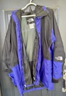 Vintage 90’s The North Face Men’s size XL blue and black men’s jacket. This jacket shows moderate signs of wear but overall is in good condition. Lots of zipper pockets and hood can be rolled up when not in use. This jacket has velcro wrist sleeves but does not include a zipper fleece to add inside. Ask any questions before purchase.