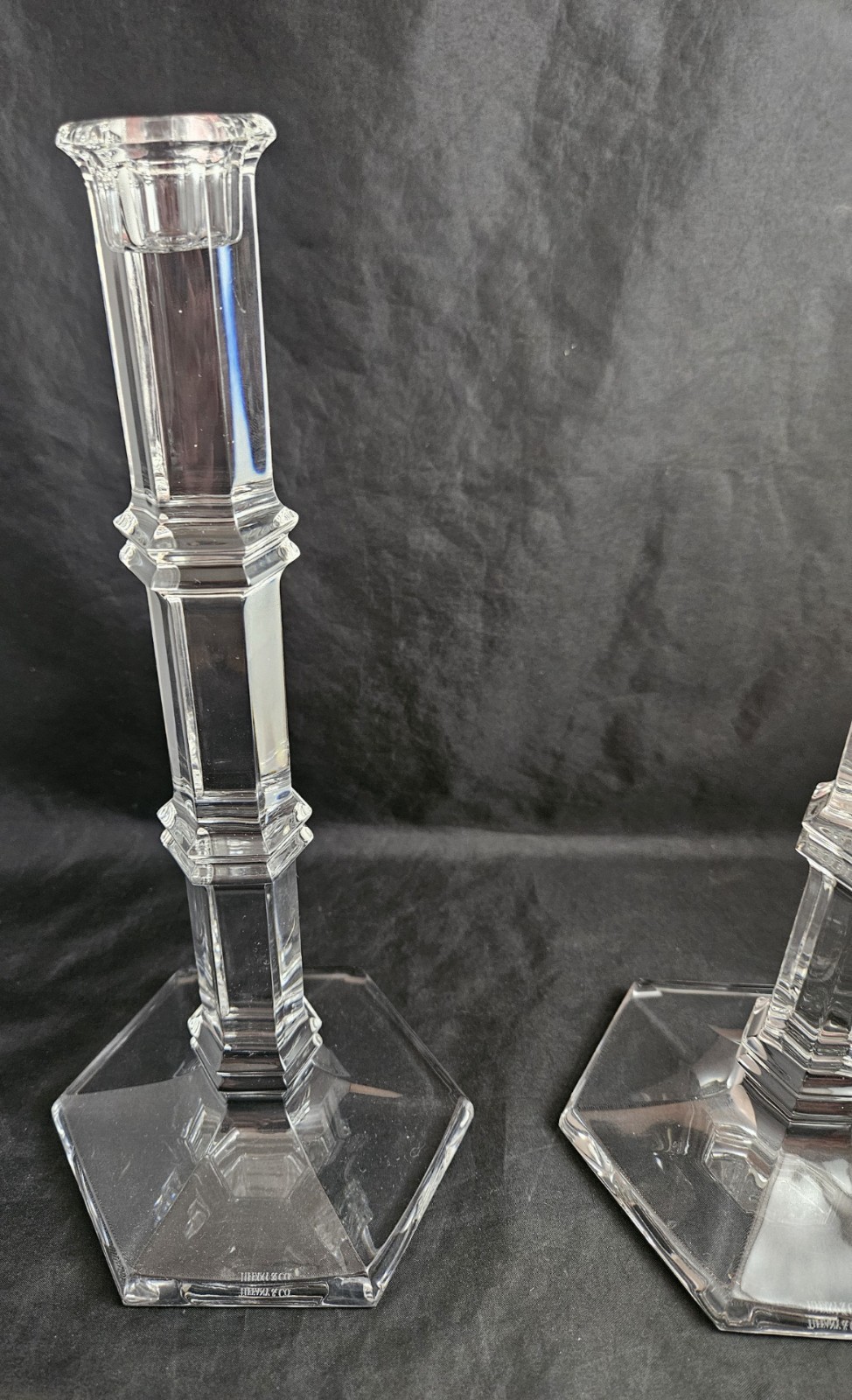 Vintage Tiffany & CO. Windham Two 11 In Tall Crystal Candlestick Holders Retired In excellent pre-owned vintage condition. There are no chips, cracks or repairs. Please see pictures for details and measurements as they are part of the description.
