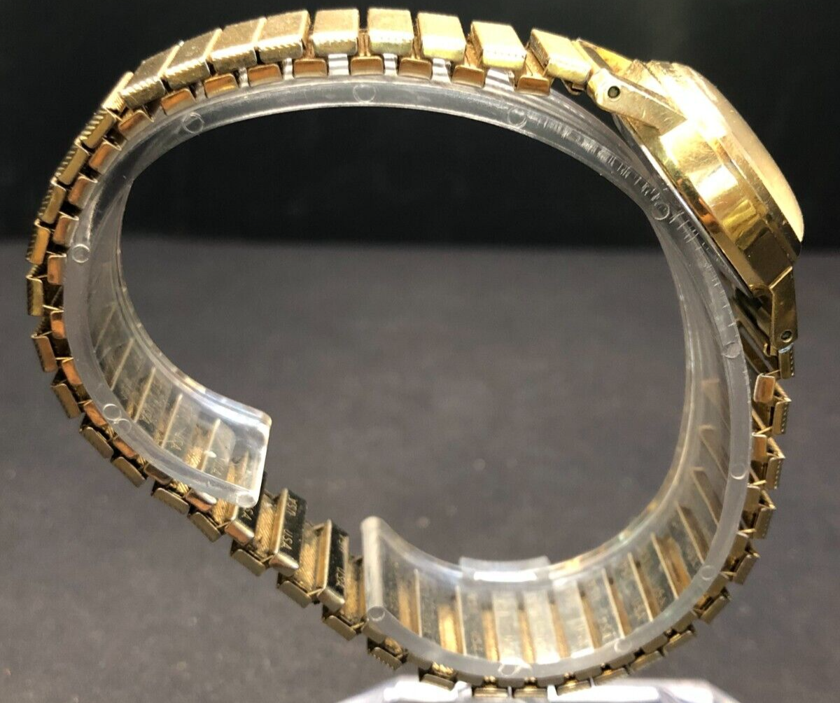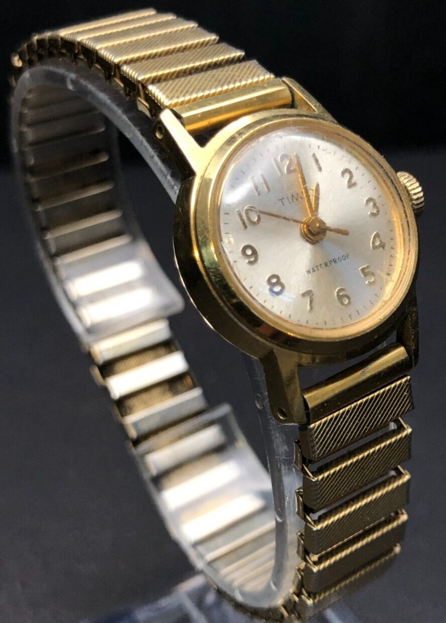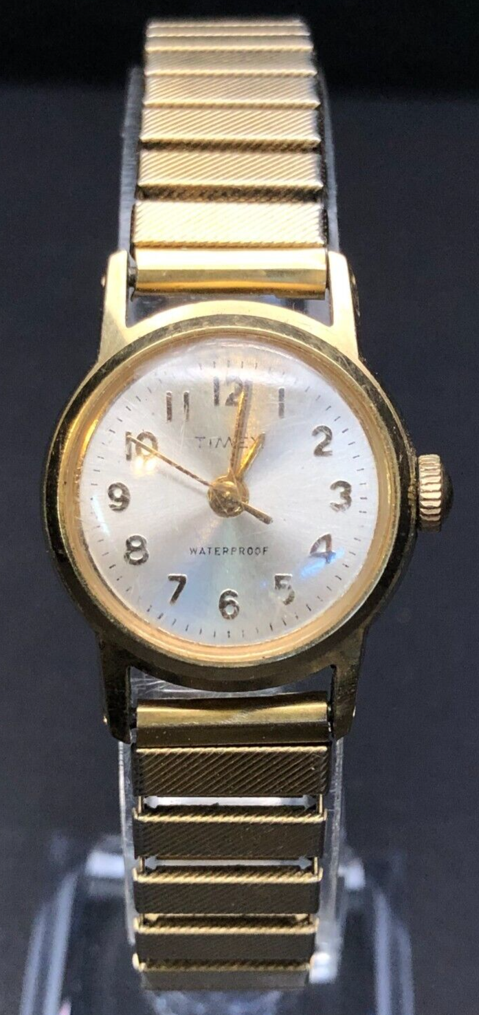 Brand: Timex Band Width: Unknown Watch Shape: Round Department: Women Band Material: Stainless Steel Year Manufactured: Unknown Model: Analog Watch Dial Pattern: Logo Band Color: Gold Band/Strap: Bracelet Handmade: No Case Material: Stainless Steel With Original Box/Packaging: No Vintage: Yes Bezel Type: Fixed Country/Region of Manufacture: Unknown With Papers: No Max Wrist Size: Unknown Display: Analog Features: 12-Hour Dial Case Color: Gold Theme: Classic Closure: Buckle Dial Color: Silver Bezel Color: Gold Indices: Arabic Numerals Seller Warranty: No Type: Wristwatch With Manual/Booklet: No Lug Width: Unknown Case Size: Unknown With Service Records: No Caseback: Solid Water Resistance: Unknown Customized: No Handedness: Right Movement: Quartz Number of Jewels: No Jewels Style: Casual Case Finish: Polished Manufacturer Warranty: 1 Month Case Thickness: Unknown