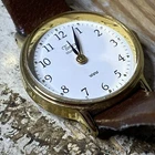 This vintage Timex wristwatch boasts a classic design that is perfect for any occasion. Featuring a round gold-tone face and a brown leather strap, this timepiece is a stunning addition to any jewelry collection. The dial, bezel, and band colors all complement each other perfectly, creating a cohesive and stylish look. It is ideal for women who are looking for an elegant yet understated accessory. In addition to its beautiful design, this Timex watch is also crafted with high-quality materials, ensuring that it is durable and long-lasting. The brand has a well-deserved reputation for creating reliable timepieces that stand the test of time. With its timeless design and superior craftsmanship, this vintage watch is a must-have for any watch enthusiast. WSA-17