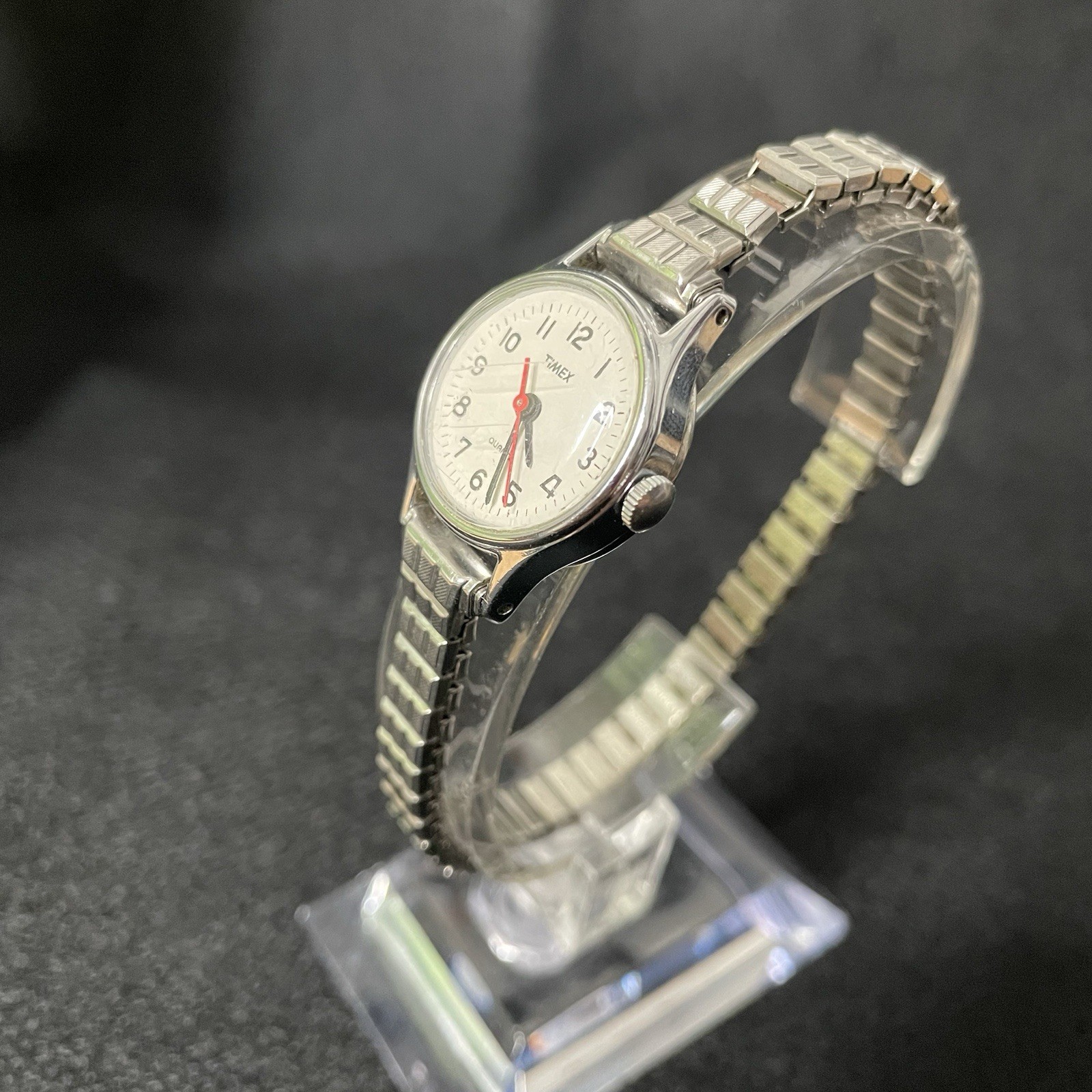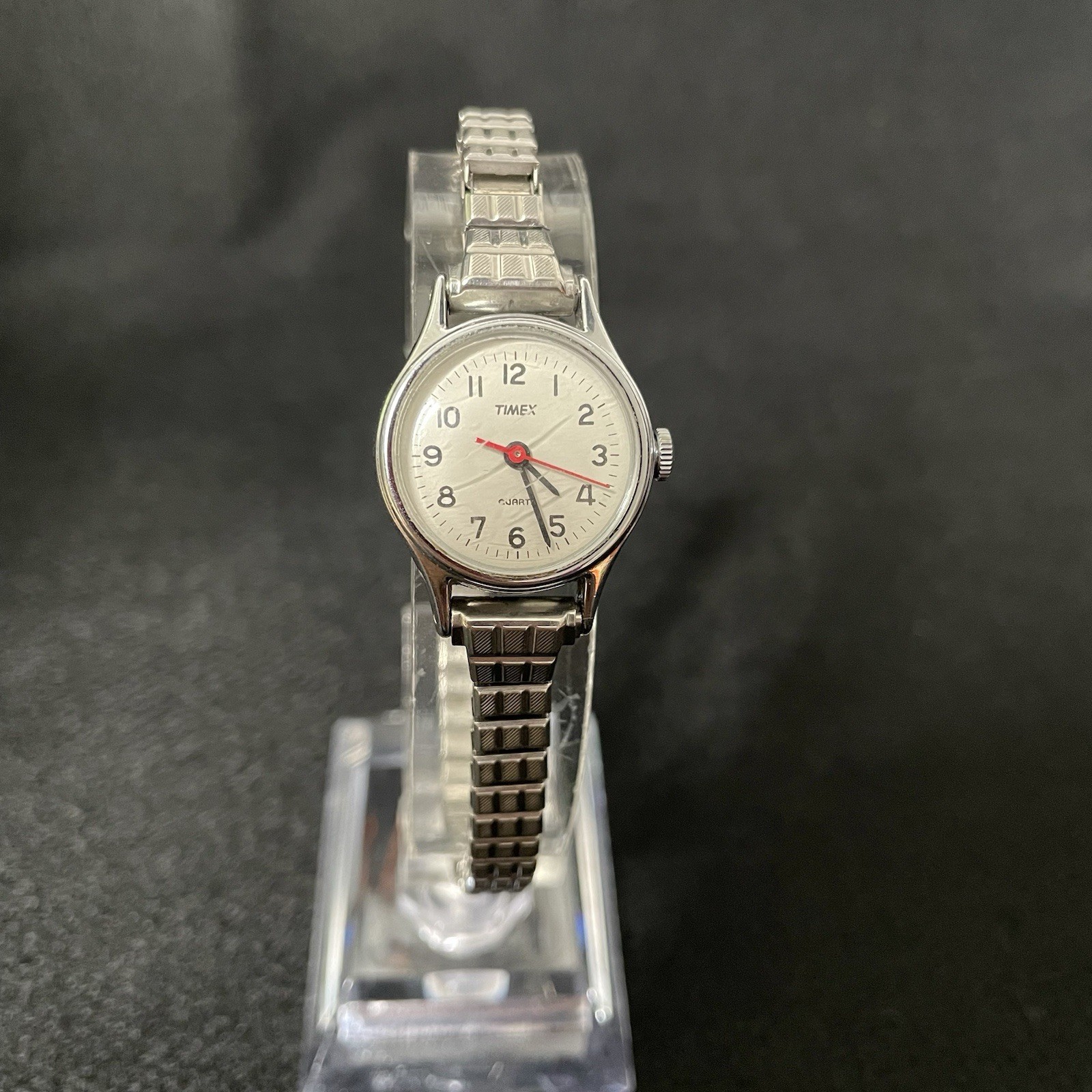 SEE PICTURES FOR REFERENCE. THE BAND IS NOT FULLY INTACT. This Vintage Timex Quartz Watch for women features a classic silver tone stainless steel case and matching stretch band, providing a timeless and elegant look. With a quartz movement, this wristwatch boasts a 12-hour dial and a 21mm case size, making it a stylish accessory for any watch lover. Perfect for everyday wear or special occasions, this Timex watch is a must-have for those who appreciate vintage charm combined with modern functionality.