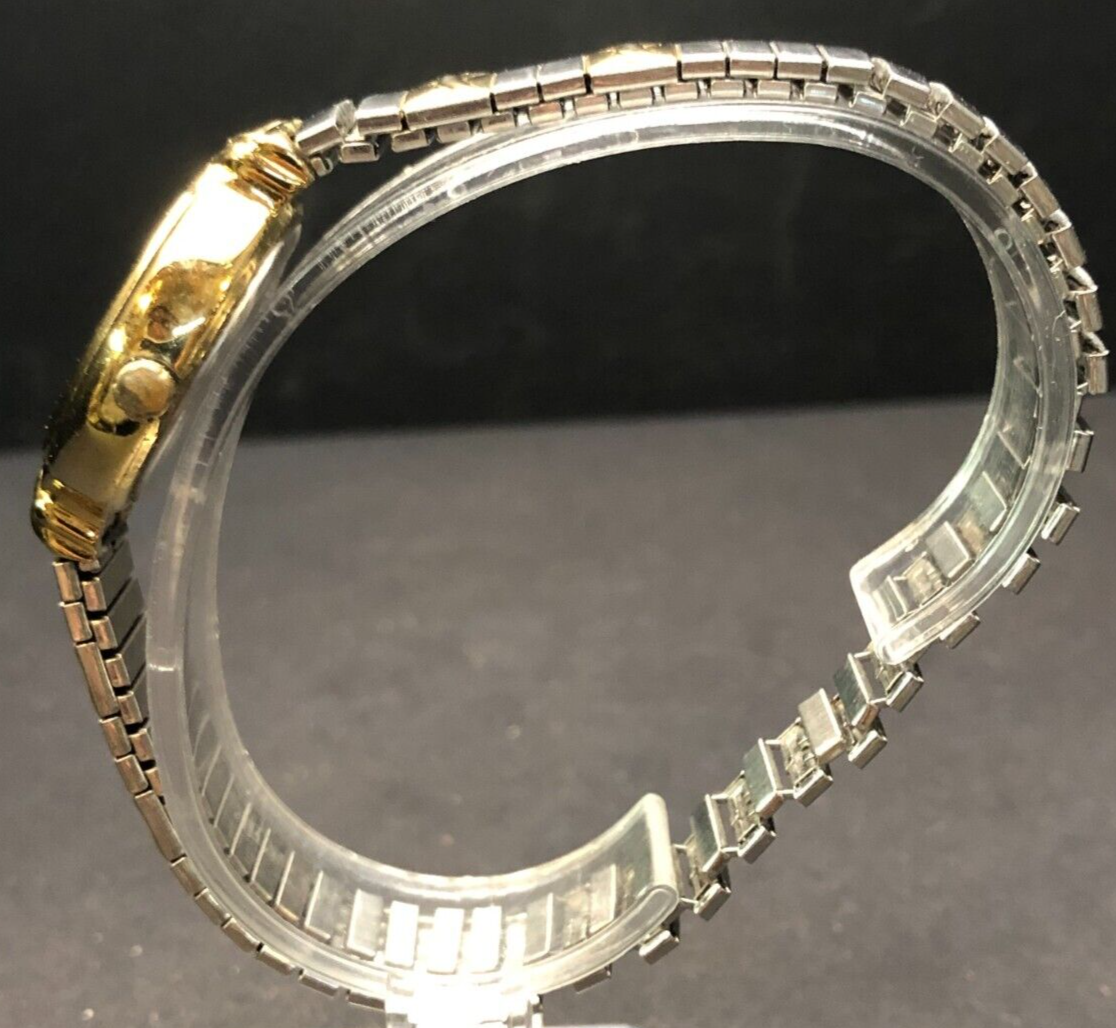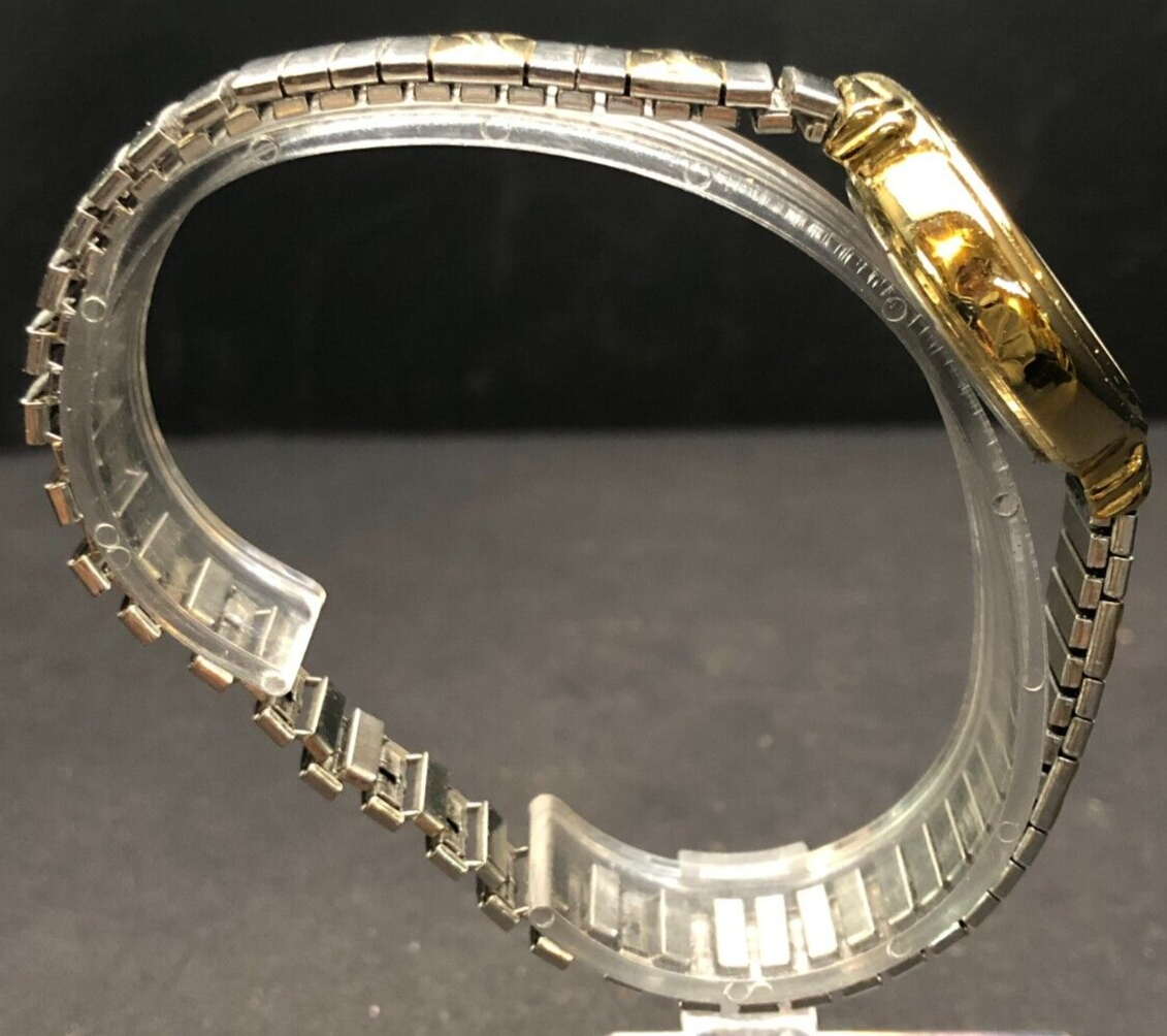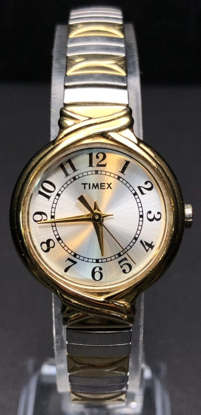 Vintage: Yes Customized: No Department: Women Display: Analog Type: Wristwatch Band Material: Stainless Steel Country/Region of Manufacture: Unknown Dial Color: Silver Handedness: Right Case Material: Stainless Steel Max Wrist Size: Unknown Case Finish: Polished Watch Shape: Round Dial Pattern: Logo Water Resistance: Unknown Manufacturer Warranty: 1 Month With Original Box/Packaging: No Theme: Classic Bezel Type: Fixed Seller Warranty: No Case Size: Unknown With Manual/Booklet: No Case Color: Gold With Papers: No Features: 12-Hour Dial Year Manufactured: Unknown Case Thickness: Unknown Indices: Arabic Numerals Bezel Color: Gold Band Width: Unknown Movement: Quartz Lug Width: Unknown Band/Strap: Bracelet Handmade: No Caseback: Solid Number of Jewels: No Jewels Brand: Timex Model: Analog Watch Band Color: Gold, Silver Closure: Buckle With Service Records: No Style: Casual