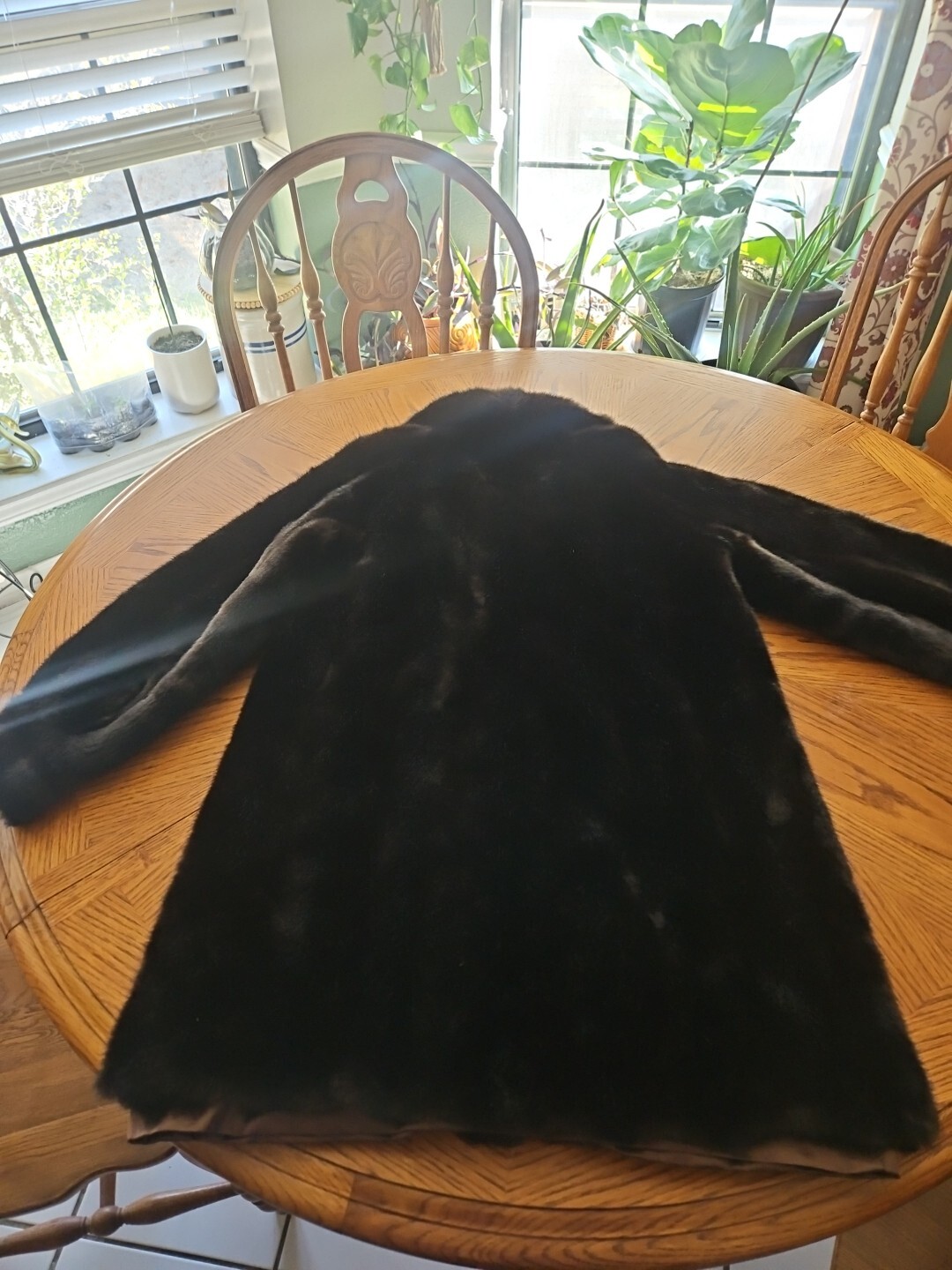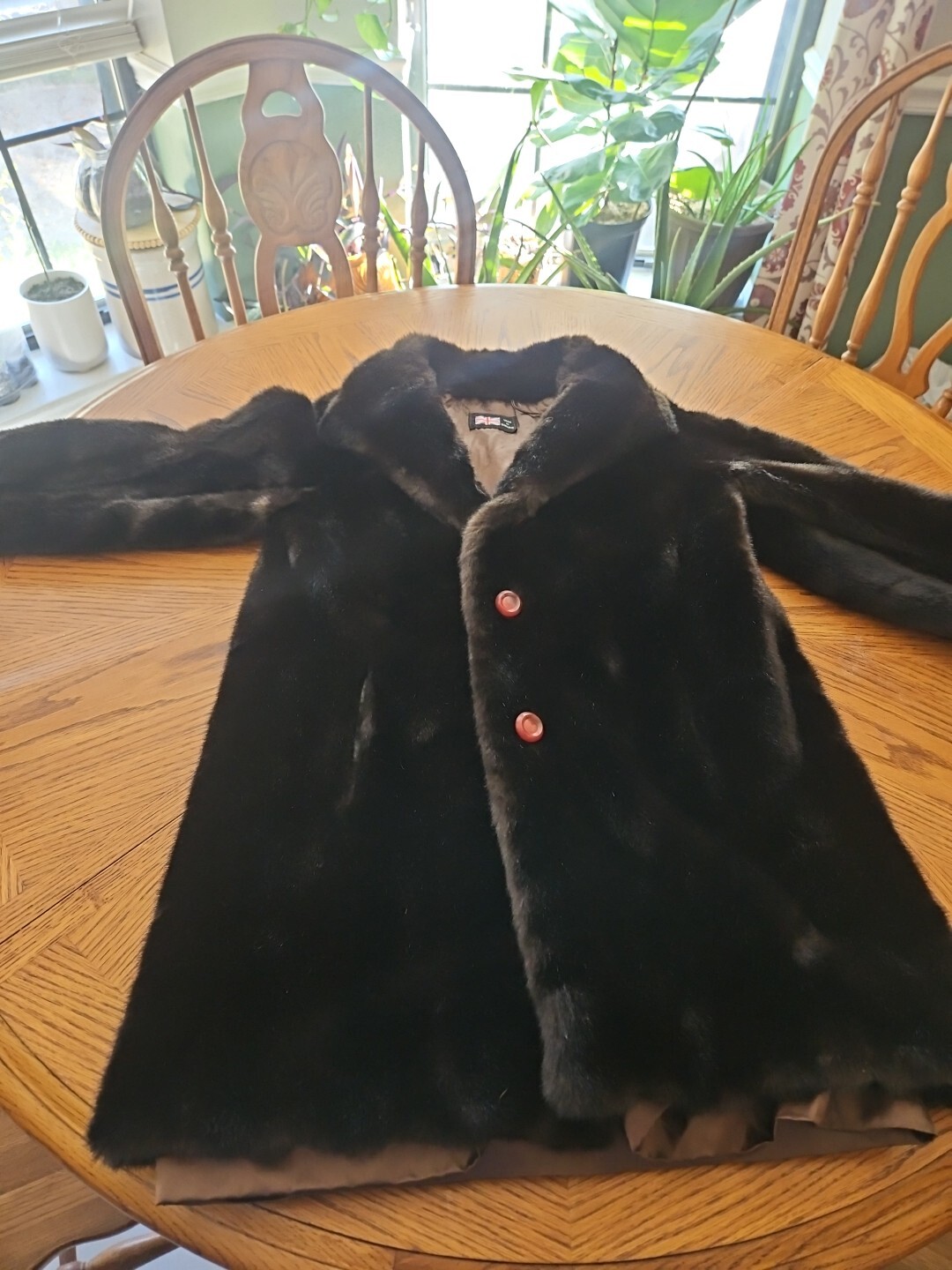 This is a vintage Tissavel faux fur coat for women in brown. It is a regular size medium overcoat with a silk lining.