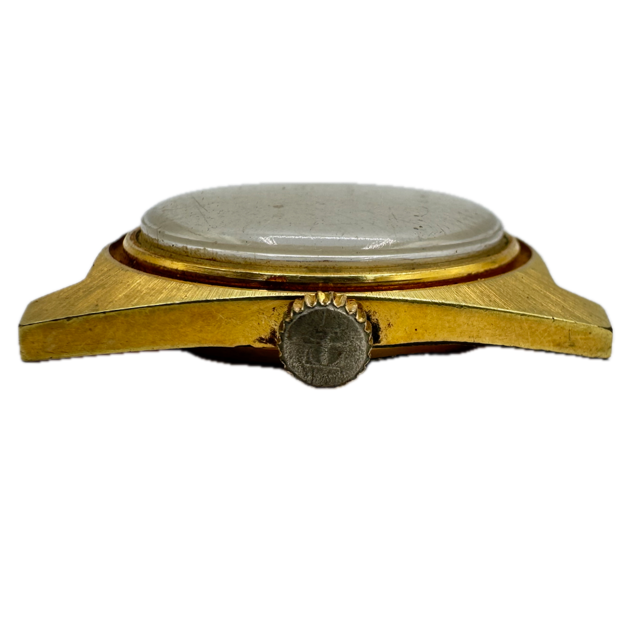 Vintage Tissot Carousel Roman Men's Mechanical Wristwatch Swiss Gold Tone Product Description Item: Wristwatch Brand: Tissot Model: Carousel Roman Movement: Mechanical Case Material: Gold Tone Country: Swiss Gender: Men's Size: 32mm Product Measurements Diameter: 32mm Width: TRUEmm Lug Width: 19.5mm Lug to Lug: 37.5mm Thickness: 9 mm Product Condition Overall Condition: Poor, overall condition for its age. Functions: Not running but the balance complete is in good condition. Case: There is plating wear through and scratches on the case. Crystal: There are scratches on the crystal. Dial: The dial has light scratches on it. Crown: The crown is worn. Additional Information: It is missing the bezel.